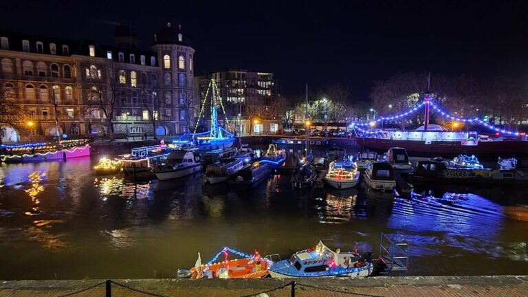 Starting from the Cumberland Basin, harbourside Christmas festivities began a procession of powered vessels and manual craft, ending in Bathurst Basin. Here, they gathered to create a dazzling pool of light before mooring up for the evening.